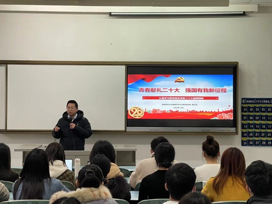 12月6日下午,学院书记周敏、院长鲁万波在经世楼C101和C201为学院学生党员、学生干部讲思政课,宣讲党的二十大精神。