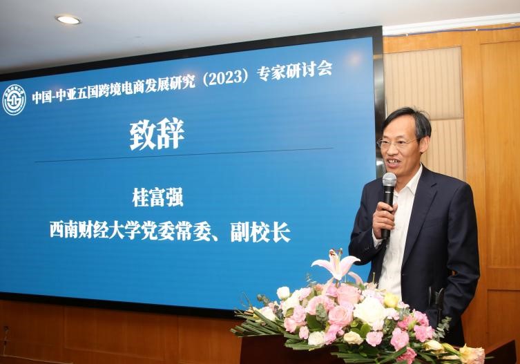 、电子科技大学、四川农业大学、成都理工大学,跨境电商典型企业等校内外专家参加本次会议,党委常委、副校长桂富强代表学校致欢迎辞。
