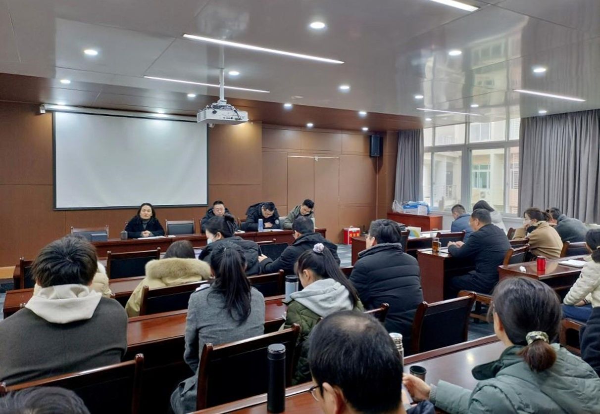 在通博楼D301会议室召开政治理论学习会,传达学校2024年春季学期中层干部学习会议精神,学院领导班子、全体教职工参会。