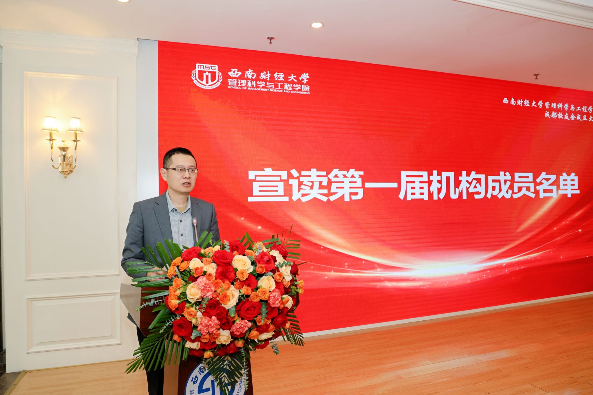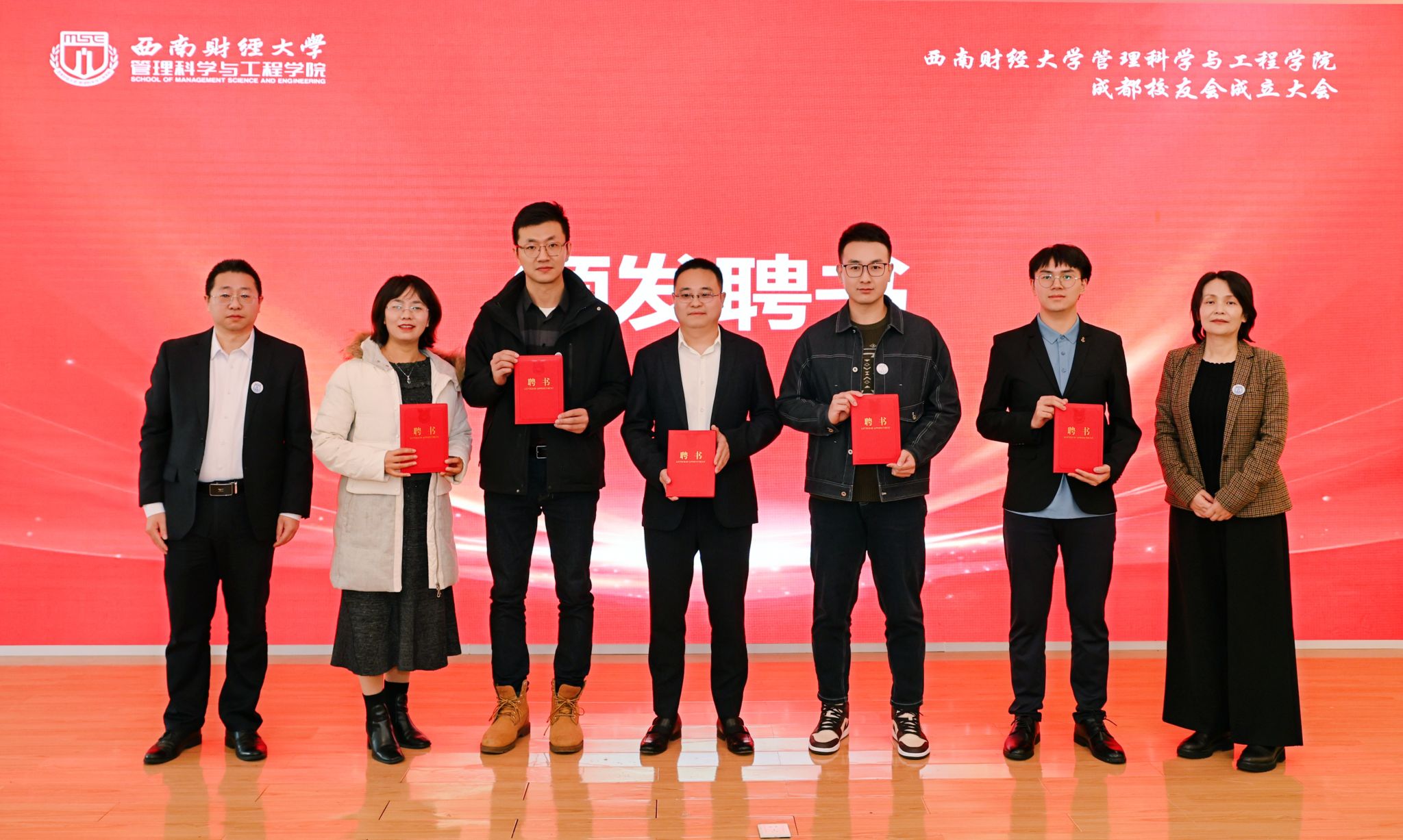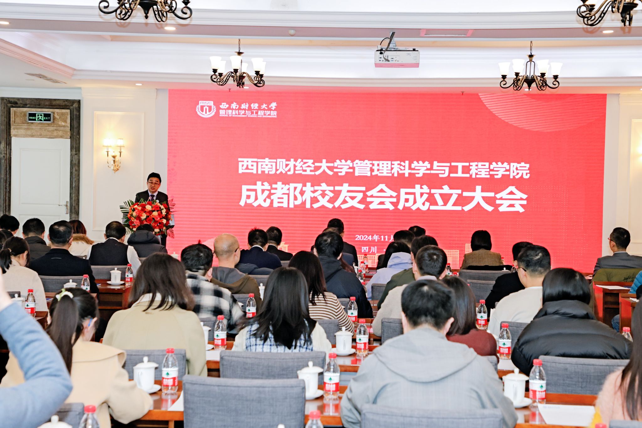 2003级校友施敏担任学院成都校友会首任秘书长并发言。他为母校取得的成就和学院发展的成绩感到自豪。他表示,学院成都校友会不仅是联络校友情感的纽带,更是信息交流的平台和事业发展的助推器,校友会将秉承“服务校友、联络感情、促进合作、共谋发展”的宗旨,凝聚校友情感、传承西财精神、促进合作共赢,为学院发展助力、为母校百年华诞献礼。