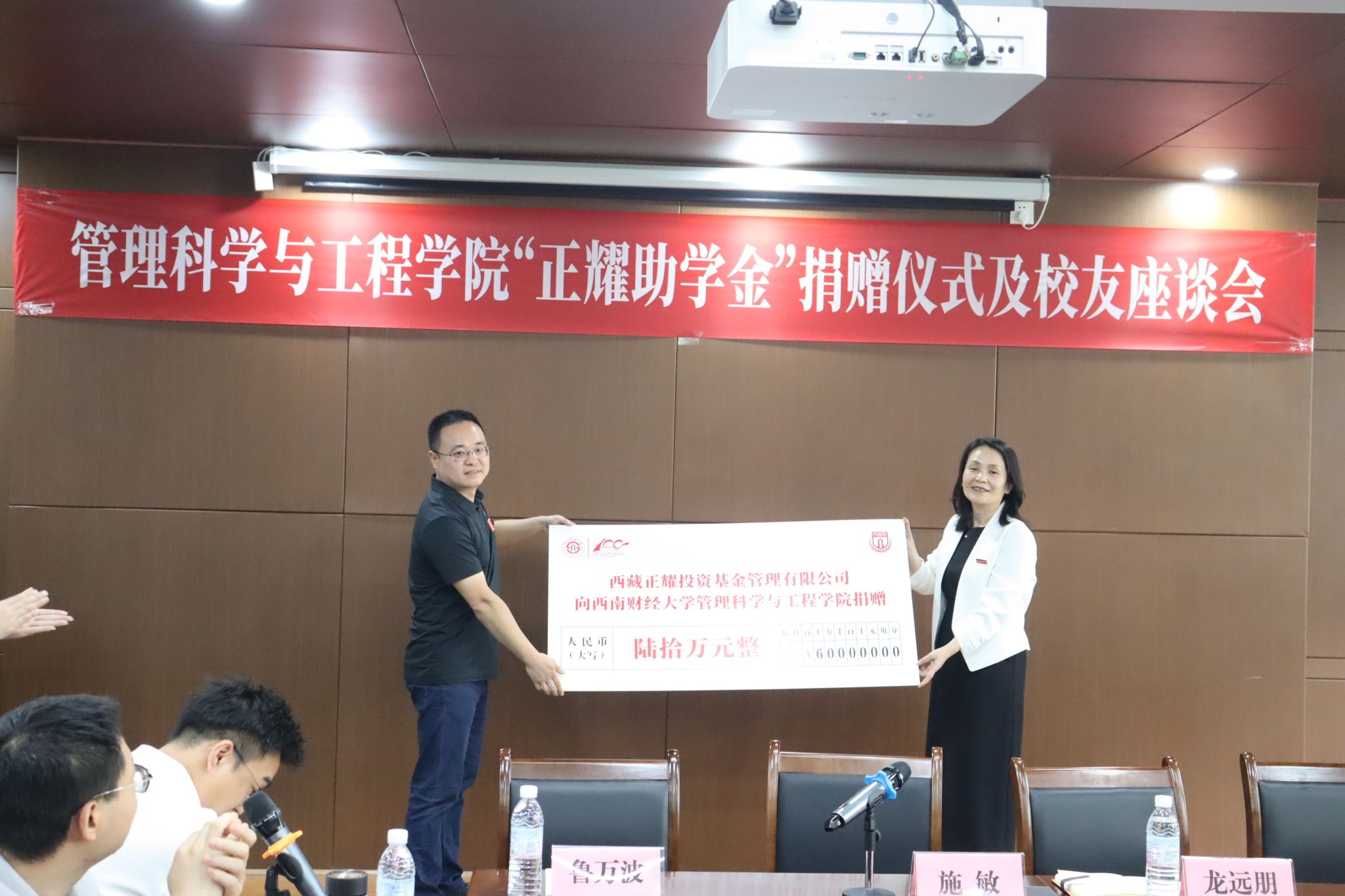 西藏正耀投资基金管理有限公司执行董事施敏校友动情分享了设立助学金的初衷:"作为深耕产业投资领域的企业,我们始终坚信知识改变命运的力量。'正耀助学金'不仅是一份经济支持,更承载着'经世济民、孜孜以求'的精神传承,希望帮助学子们心无旁骛追求学术理想。"