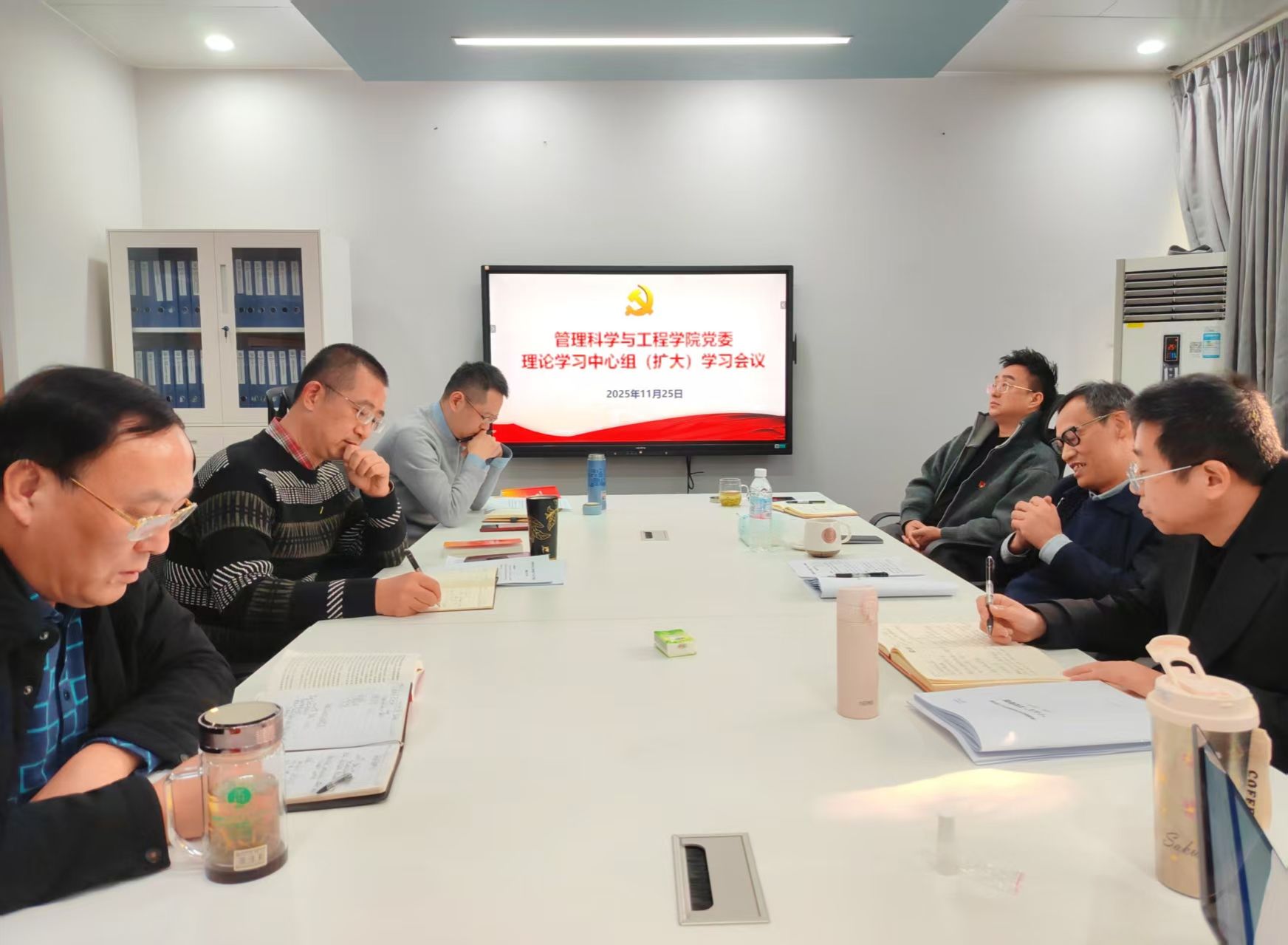 在通博楼D402室召开党委理论学习中心组(扩大)学习会,专题学习党的二十届四中全会精神,系统谋划学院“十五五”时期发展蓝图。学校党委常委、副校长桂富强列席指导,学院领导班子成员、党委委员、教师支部和系(所)代表参加或列席会议。会议由学院党委书记曹旭斌主持。