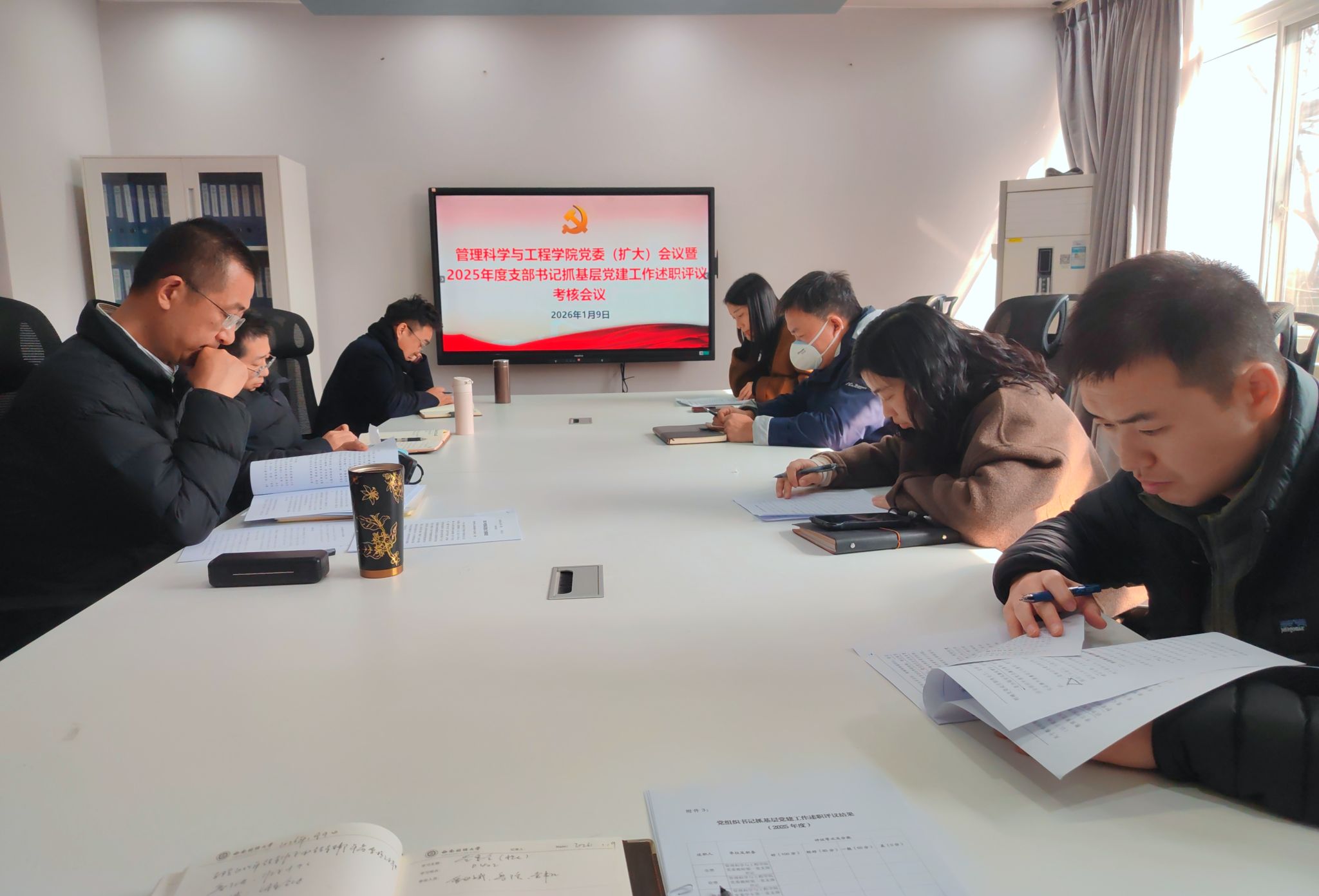 为深入学习贯彻习近平新时代中国特色社会主义思想和党的二十届四中全会精神,进一步压实基层党组织书记抓党建第一责任人职责,切实提升基层党建工作质量和水平。1月9日,学院在柳林校区通博楼D402室开展2025年度党支部书记抓党建工作述职评议考核会,学院党委班子成员、各党支部书记及师生党员代表参加会议,会议由学院党委书记曹旭斌主持。