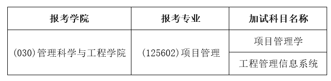 根据《2025年全国硕士研究生招生工作管理规定》第五十五条规定,以同等学力参加复试的考生,在复试中须加试至少两门与报考专业相关的本科主干课程。现将我院项目管理专业学位专业2025年复试加试科目补充通知如下,供考生参考。