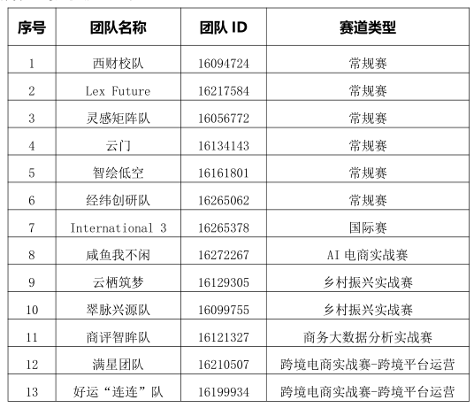 现场赛入选团队信息如下: